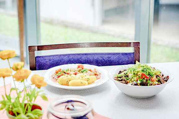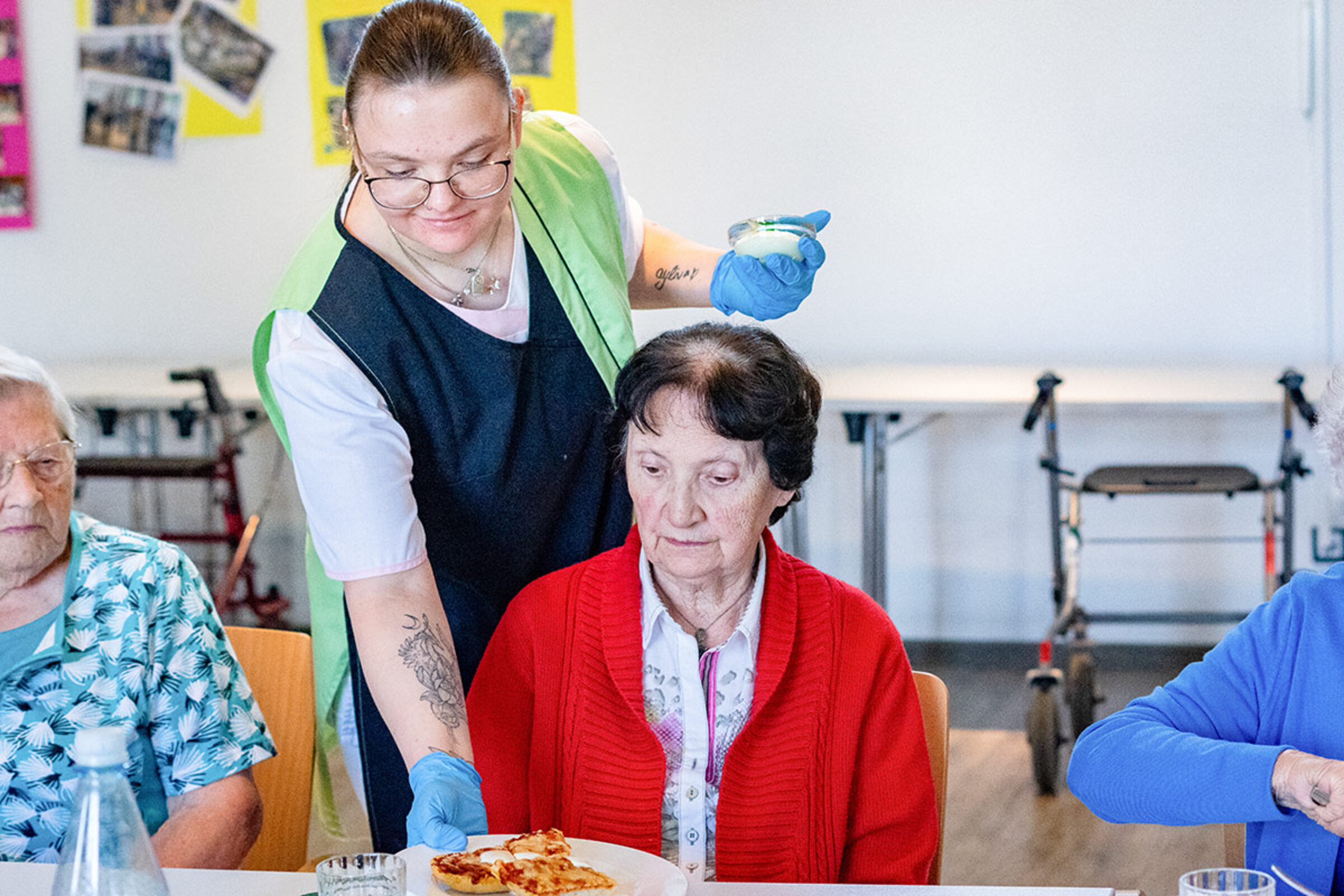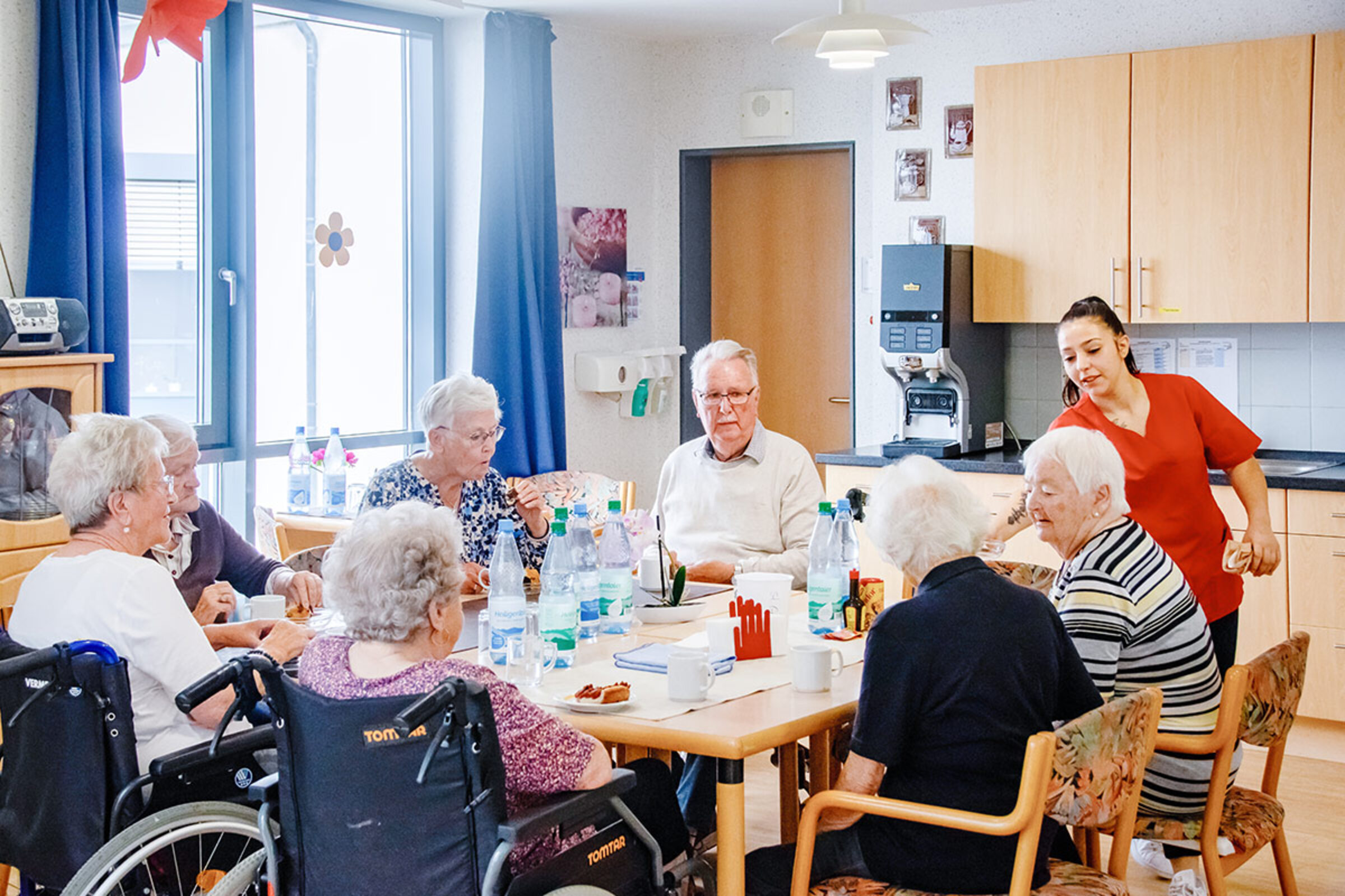 Das gemeinsame Essen fördert die Begegnung mit anderen Mitbewohnern und stärkt das Gemeinschaftsgefühl. Unsere Bewohnerinnen und Bewohner können jedoch frei entscheiden, ob sie ihre Mahlzeiten in geselliger Runde in der Cafeteria bzw. Wohngruppe oder lieber in ihrem eigenen Zimmer genießen möchten.