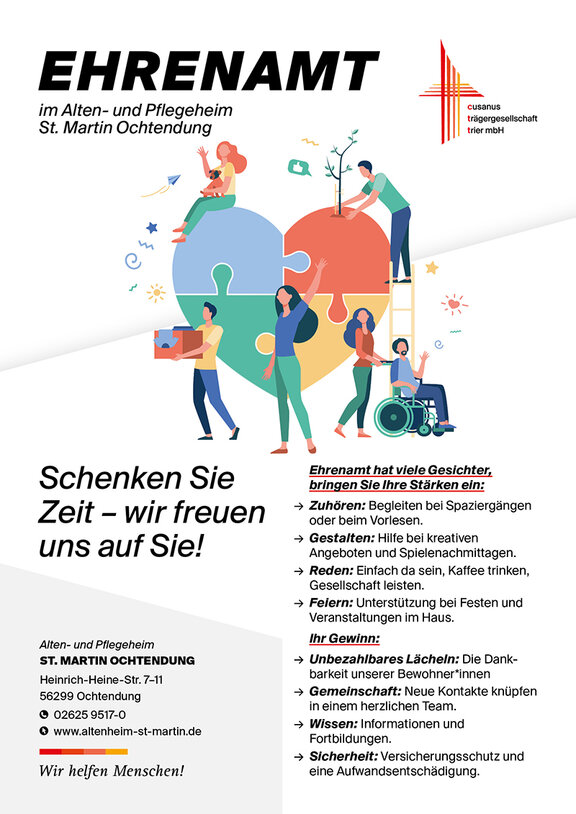 Unsere Bewohnerinnen und Bewohner erfahren bei uns fachlich kompetente Pflege, individuelle Betreuung und menschliche Zuwendung. Unser Ziel ist es, dass sie sich von Anfang an wohlfühlen, neue Kontakte knüpfen und Gemeinschaft erleben. Das Haus St. Martin ist bekannt für seine hohe Pflegequalität und seinen ausgezeichneten Ruf, der weit über Ochtendung hinaus geschätzt wird.