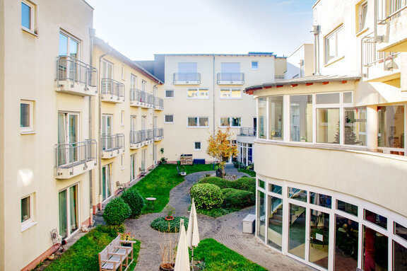 Unsere 75 Einzel- und 31 Doppelzimmer bieten Platz für insgesamt 137 Bewohnerinnen und Bewohner in Kurzzeitpflege und stationäre Pflege. Die gemütlich gestalteten Wohneinheiten sind U-förmig um einen begrünten Innenhof mit Garten und Brunnen angeordnet und laden zum Verweilen ein. Barrierefreiheit ist im gesamten Haus selbstverständlich: ebene Zugänge, drei Aufzüge, bodengleiche und rutschsichere Duschen sowie Haltegriffe sorgen für Sicherheit und Komfort.