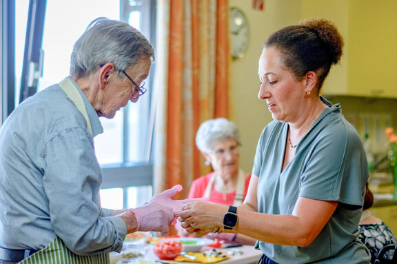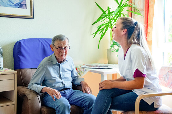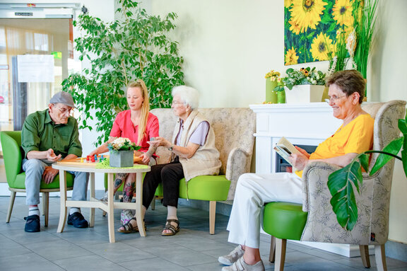 Besonderen Wert legen wir auf die Versorgung demenziell veränderter Menschen: Zwei speziell eingerichtete Wohngruppen ermöglichen eine individuell abgestimmte Betreuung in einer familiären Atmosphäre. Diese vertraute Struktur erlaubt es den Seniorinnen und Senioren, den Tagesablauf so zu gestalten, wie sie es aus früheren Zeiten gewohnt sind.
