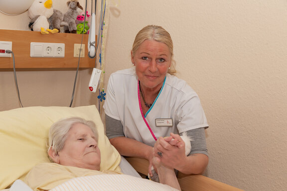 Auch in der letzten Lebensphase erhalten die uns anvertrauten Menschen eine individuelle, würdevolle Pflege, die Leiden lindert und Ängste nimmt. Dabei geht es nicht nur um Schmerztherapie, sondern auch um zwischenmenschliche Nähe, Zuwendung und das Gefühl, nicht allein zu sein.