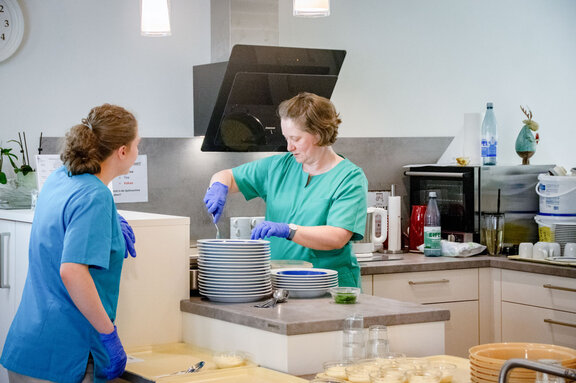 Für das leibliche Wohl sorgt unsere Hauswirtschaft: Die Mahlzeiten werden in den Hausgemeinschaften zubereitet – von traditioneller Hausmannskost bis zu leichten, ärztlich empfohlenen Speisen. Die Wünsche der Seniorinnen und Senioren fließen in die Speisepläne ein, sodass die Ernährung abwechslungsreich und individuell bleibt.