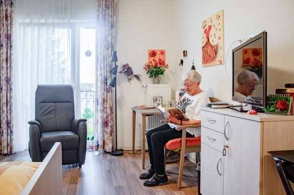 In der stationären Pflege in unserem Pflegeheim in Vallendar stehen 85 Pflegeplätze in komfortablen Einzelzimmern mit eigenem Bad zur Verfügung. Alle Zimmer sind mit Pflegebett, Notrufanlage, Telefon- und TV-Anschluss ausgestattet. Persönliche Möbel und Erinnerungsstücke können jederzeit integriert werden – so entsteht ein individuelles Zuhause im Alter.